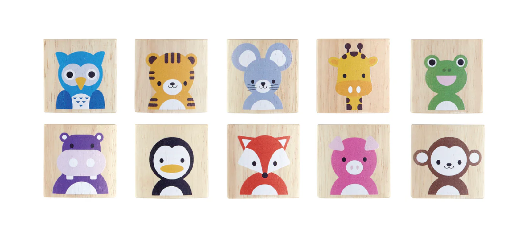 Children can learn about the many animals of the world while practicing their memory and strategy skills with the PlanToys Animals Memo game. Shuffle the cards and turn them over. Take turns flipping 2 cards over to try and make a match. The first player to get the most matches wins. Enhance the fun by incorporating animal sounds when a match is made! This game features a panda, hippo, lion, tiger, frog, pig, fox, cow, penguin, and giraffe.